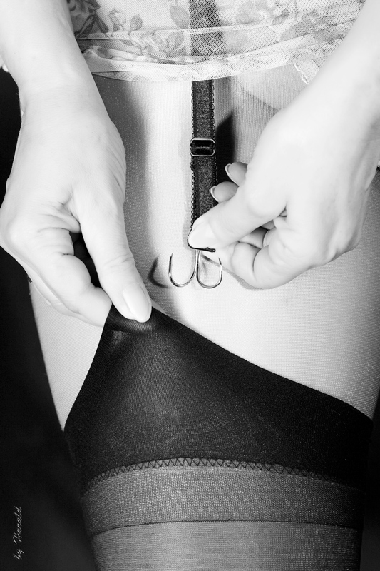 “I love the way they feel, and frankly, I never have a problem with them. That’s what a 6 garter girdle is for! I line them up in the morning when I get dressed, and that’s the end of it. I adjust them briefly in the ladies, but that’s five extra seconds per leg. Nothing to get all het up over, I assure you.